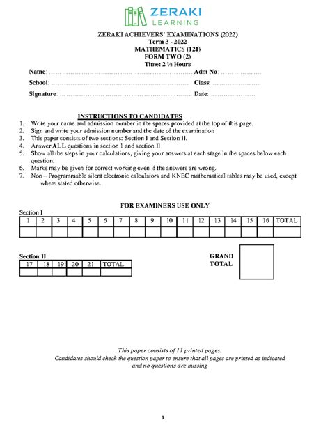 Form 2 Maths Exam Paper Books