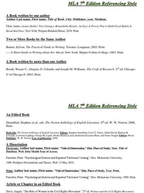 Mla 7Th Edition Format Examples Books